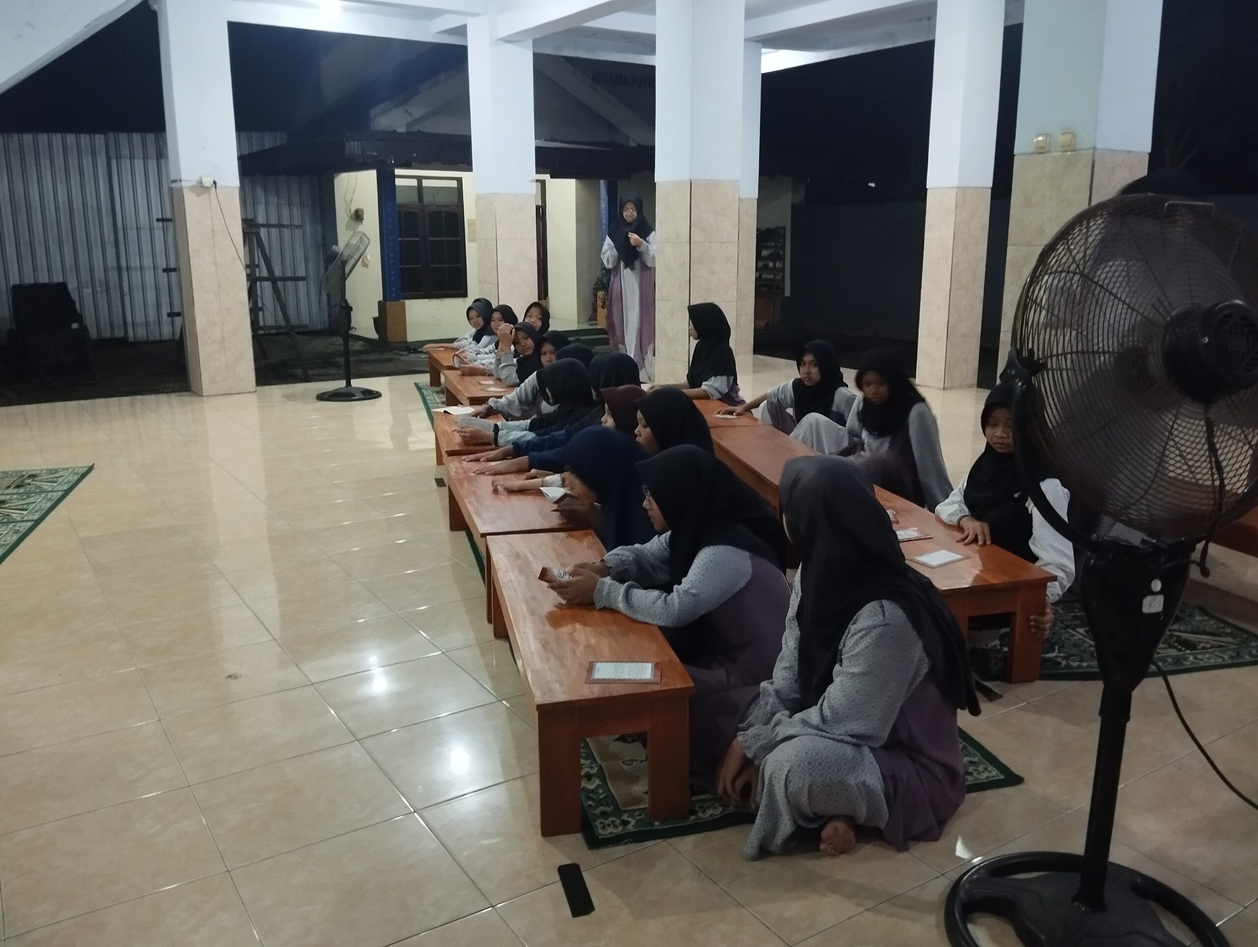 Aku dan teman-teman berjalan bersama menuju LKSA Panti Asuhan ‘Aisyiyah Kabupaten Nganjuk. Mengaji bersama sholat Magrib Mengaji bersama sholat Isya’ berjamaah dan murajaah Al-mulk bersama