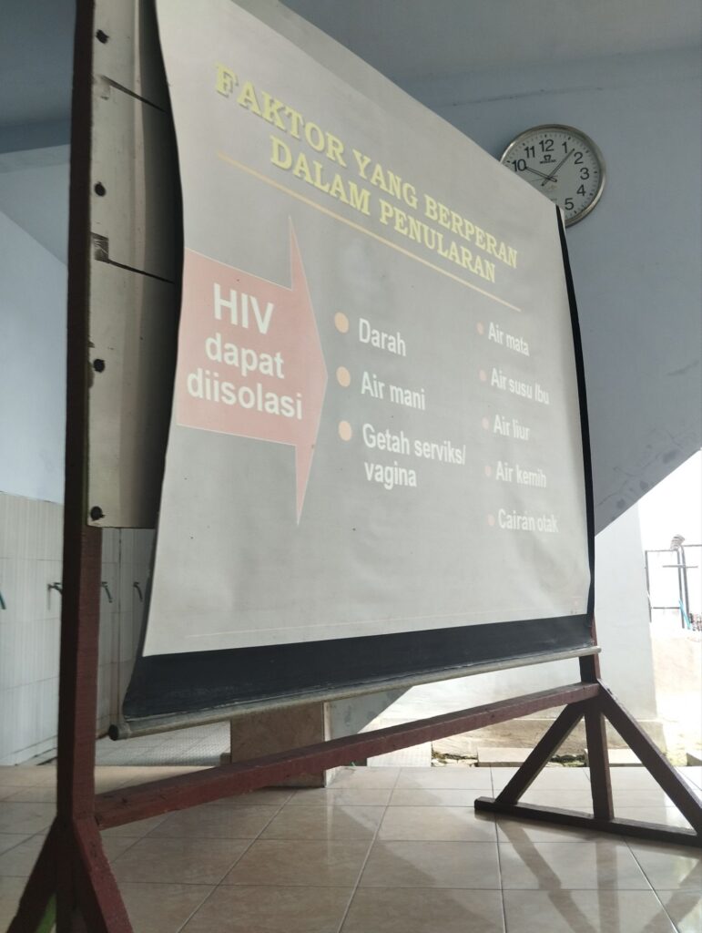 Pada sesi penyuluhan kesehatan, Ibu Kalim juga memberikan materi penting mengenai HIV dan AIDS, menjelaskan perbedaan antara keduanya, cara penularan, bahaya, serta langkah-langkah pencegahannya.